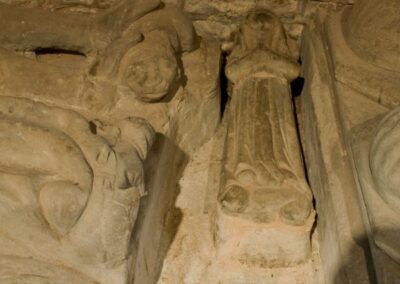 In the Tower base can be seen a remarkable group of medieval effigies together with a flat slab bearing the figure of a lady identified as Maud de Edefen all of which commemorate the Edefen family.