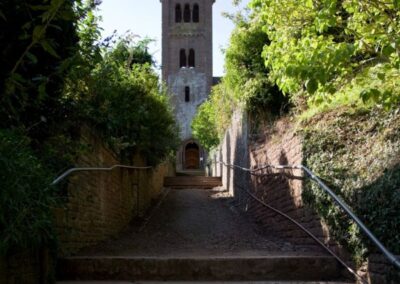 Hoarwithy church was originally a chapel built in 1840 and when Prebendary William Poole was appointed vicar of the parish in 1854 he wanted to “beautify the chapel”. The result was the impressive Italianate Romanesque and Byzantine building designed by J.P.Seddon.