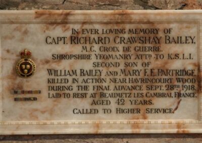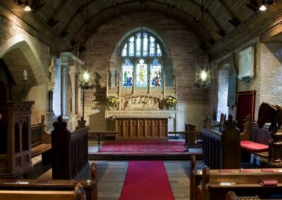 3) The Choir Stalls are 15th century, paid for by Blanche’s father or grandfather – look for the Parry coat-of-arms carved in front of the Minister’s seat. They probably matched the Rood Screen, long gone but the steps survive in the wall.