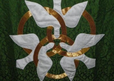 The church contains a fine pictorial quilt made by the ladies of Brimfield in 1987. The altar cloth pictured was created in 2010 by a lady from the village.