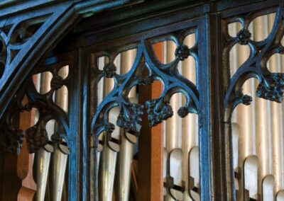 Have a good look round inside. There are many interesting features showing different periods and styles of architecture. This lovely wooden tracery screen separating the nave and chancel is C15th.